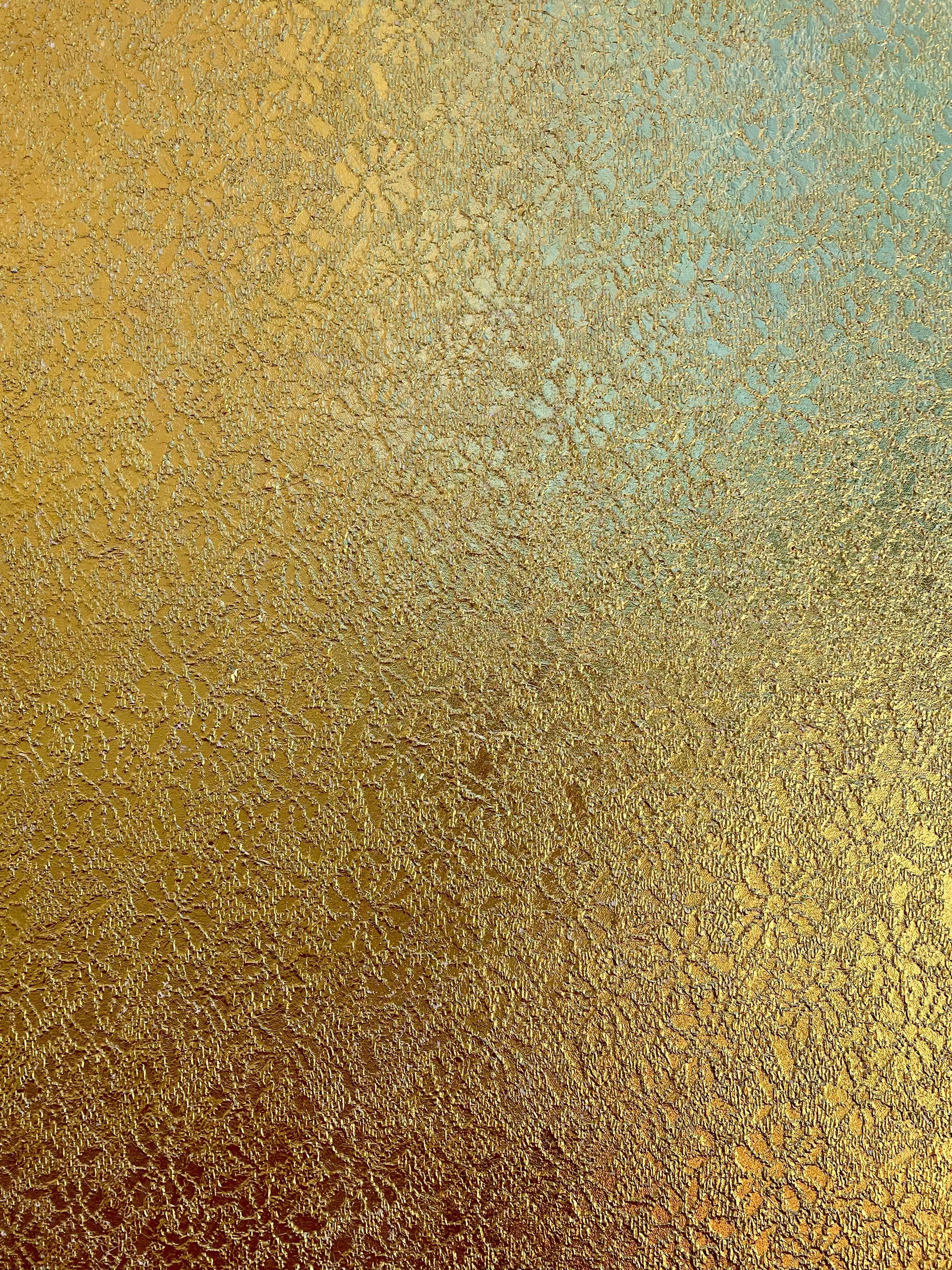 Gold ist mehr als nur eine Farbe – es steht für Lebensfreude, Zuversicht und die göttliche Kraft des Lichts. In dunkleren Räumen entfaltet es seine volle Wirkung, da es das vorhandene Licht einfängt, reflektiert und die Helligkeit im Raum erhöht. Meine Werke schaffen so eine besondere Atmosphäre, in der man das Gefühl hat, irgendwo sei ein Licht eingeschaltet – auch wenn das physische Licht kaum präsent ist.