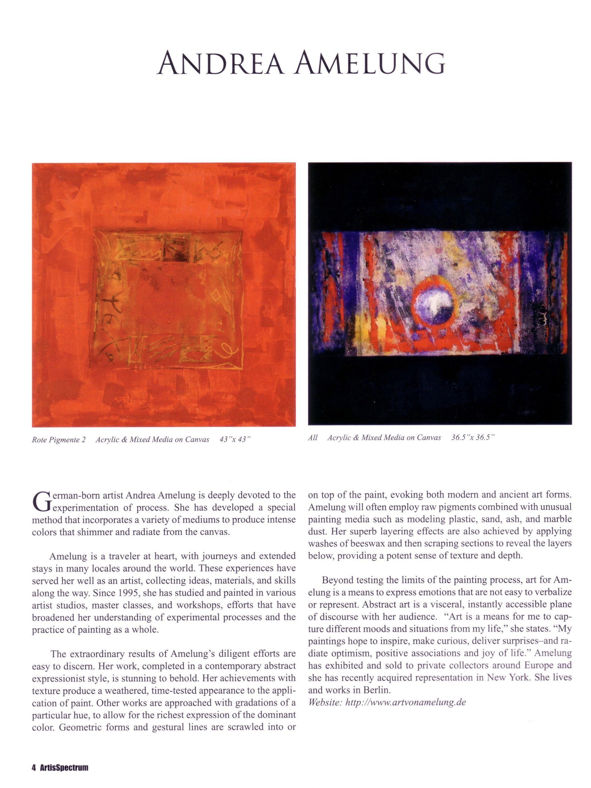 "Andrea Amelung", ARTisSpectrum Magazine New York, Vol. 17, Seite 4